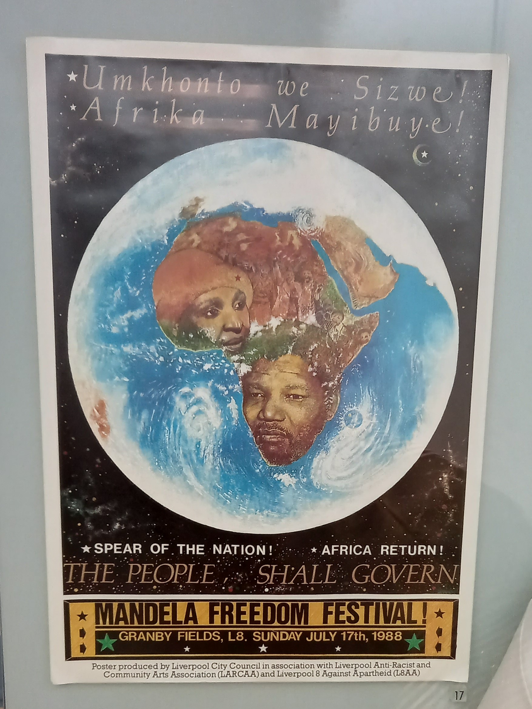 Celebrating the activism and creativity of Liverpool 8, the exhibit highlights Nelson Mandela’s ongoing importance as a role model for the community. It records the many years of demonstrations, boycotts, and community events which protested against the brutal apartheid regime in South Africa, and through which Liverpool 8 lent its strong voice to the calls for Mandela’s release from prison.
