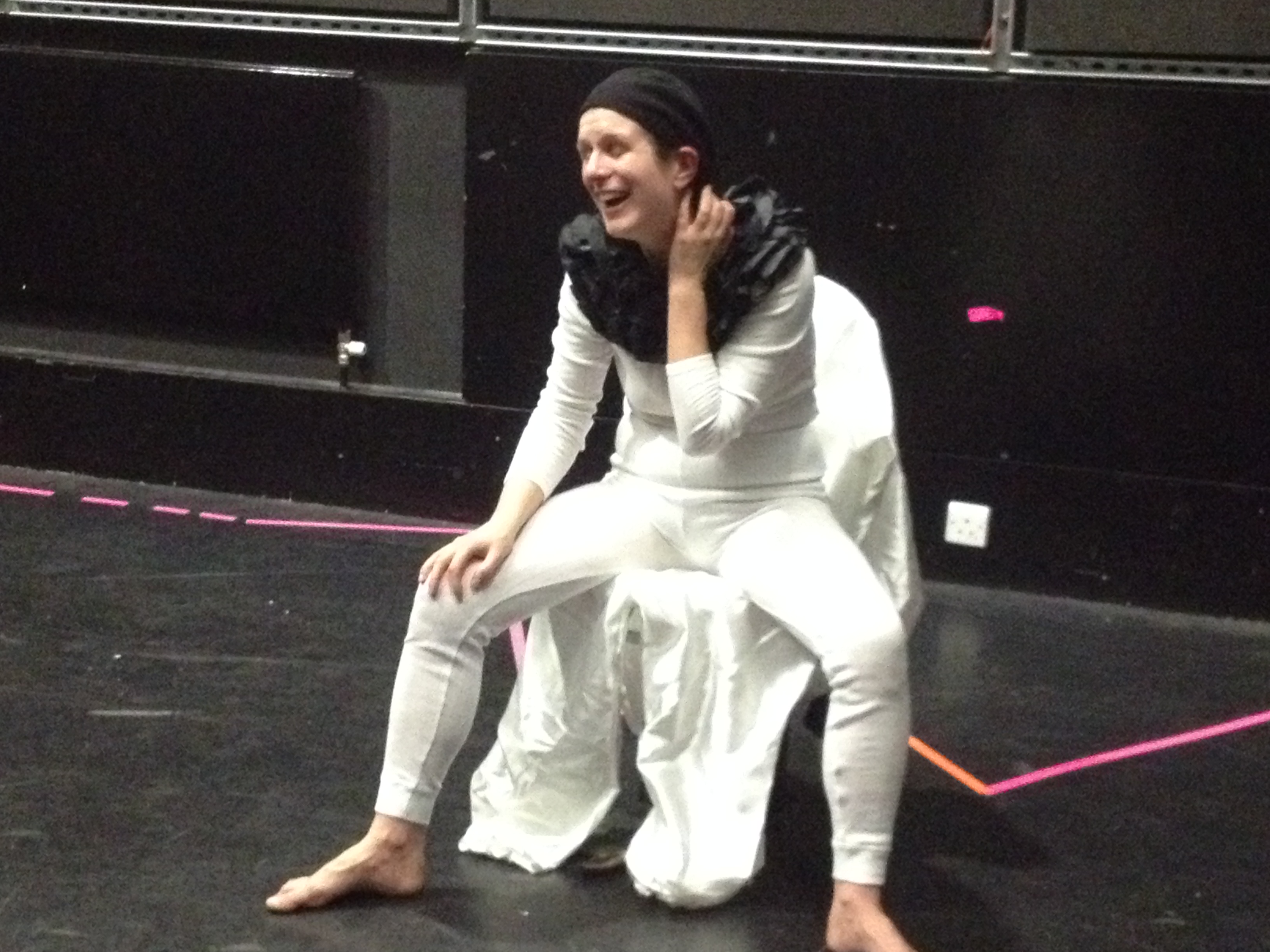 Monday 5 May 2014: Sidelong Productions lead the Cambridge English Faculty’s Drama and Performance Graduate Seminar, performing Wild Laughter in the Faculty Boardroom. This is the first outing for Ellie’s costume: designed by Florence Hazard, the Pierrot suit is modelled on an image of Sarah Bernhardt. The script has doubled in length: the performance lasts 23 minutes and is followed by 40 minutes of Q&A.